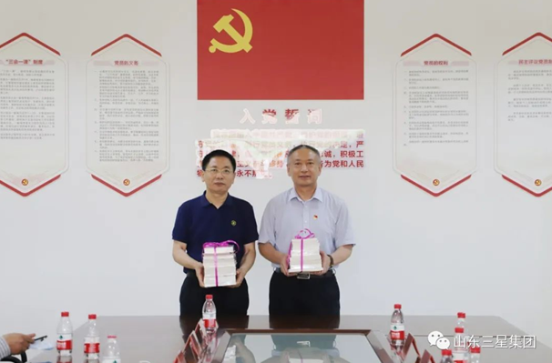 黨建示范點參觀結束,在隨后舉行的座談及贈書送學活動中,省民營企業(yè)高質量發(fā)展服務隊濱州二隊隊長、省委辦公廳二級巡視員崔本明詳細了解了企業(yè)黨建工作基本情況、特色優(yōu)勢以及亮點工作開展情況,對山東三星集團各項黨建工作給予了充分肯定,要求企業(yè)繼續(xù)堅持一手抓生產(chǎn)經(jīng)營、一手抓企業(yè)黨建,真正把黨建工作融入生產(chǎn)工作崗位、員工思想行動和生產(chǎn)經(jīng)營管理過程中,實現(xiàn)黨建工作與企業(yè)發(fā)展的共建共贏。