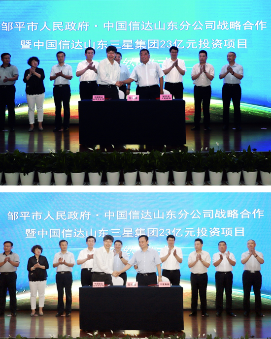 7月21日,鄒平市人民政府·中國信達(dá)山東分公司戰(zhàn)略合作暨中國信達(dá)山東三星集團(tuán)23億元投資項(xiàng)目簽約儀式圓滿成功。此次簽約,鄒平市人民政府、中國信達(dá)、山東三星集團(tuán)三方就推動(dòng)國有資產(chǎn)、非公資產(chǎn)深度合作,優(yōu)化地方金融發(fā)展環(huán)境達(dá)成共識(shí)。啟動(dòng)經(jīng)濟(jì)新引擎,共謀發(fā)展新格局。這是鄒平市在金融領(lǐng)域“雙招雙引”的一項(xiàng)重要成果,是中國信達(dá)服務(wù)實(shí)體經(jīng)濟(jì)尋求實(shí)質(zhì)性突破進(jìn)程中的重要節(jié)點(diǎn),也是山東三星集團(tuán)高質(zhì)量發(fā)展史上破局求變、創(chuàng)新謀遠(yuǎn)的重要里程碑。