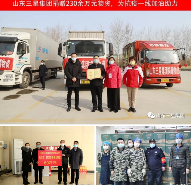 疫情防控期間,山東三星集團(tuán)在積極開展疫情防控工作同時,主動擔(dān)當(dāng),積極行動,先后向鄒平市慈善總會、華中科技大學(xué)同濟(jì)醫(yī)學(xué)院附屬協(xié)和醫(yī)院、武漢市洪山區(qū)、黃岡市英山縣定點醫(yī)療救治機(jī)構(gòu)、濱州市紅十字會等抗疫最前線捐贈價值300余萬元的生活、醫(yī)療物資。旗下“明航汽車”充分發(fā)揮行業(yè)優(yōu)勢,參與物資捐贈、物資運輸保障、車隊支援服務(wù)等。