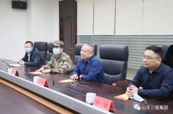 1月26日,鄒平市委常委、人武部部長胡燕龍來山東三星集團(tuán)調(diào)研企業(yè)民兵編組活動(dòng)。山東三星集團(tuán)董事長王明峰、副總經(jīng)理孫喜接待調(diào)研領(lǐng)導(dǎo)。
