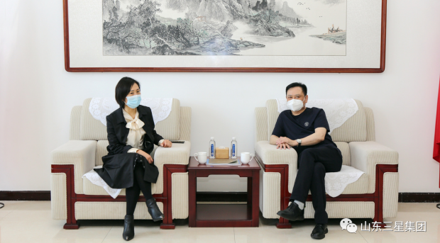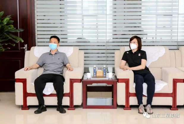 4月10日,鄒平市委常委、統(tǒng)戰(zhàn)部部長張欣來山東三星集團調(diào)研疫情防控及生產(chǎn)經(jīng)營情況。韓店鎮(zhèn)黨委書記邢錦凱,鎮(zhèn)黨委宣傳委員、統(tǒng)戰(zhàn)委員李寧陪同調(diào)研。山東三星集團董事長、總裁王亞群,總經(jīng)理王明星、常務副總經(jīng)理王明亮參加調(diào)研座談。