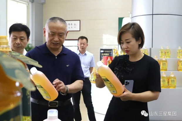走進(jìn)長壽花食品展廳及玉米油灌裝包裝全自動生產(chǎn)基地,張央青一行重點(diǎn)了解了企業(yè)高端糧油產(chǎn)業(yè)運(yùn)營、創(chuàng)新科研及戰(zhàn)略規(guī)劃情況,對山東三星集團(tuán)深耕高端糧油、務(wù)求富農(nóng)利民的做法給予了高度評價和贊賞,并就產(chǎn)業(yè)發(fā)展及鄉(xiāng)村振興與王明峰作深入探討。