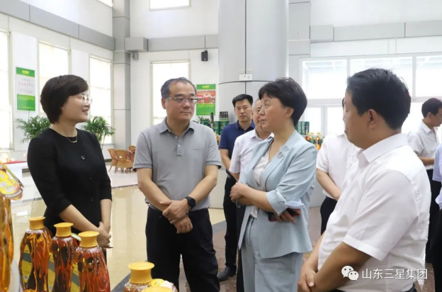 7月21日,山東省糧食和物資儲(chǔ)備局黨組書記、局長王偉華就優(yōu)質(zhì)糧食工程項(xiàng)目來山東三星集團(tuán)調(diào)研。濱州市副市長、市工商聯(lián)主席杜玉杰,鄒平市委書記呂明濤,鄒平市委常委、副市長劉志峰參加活動(dòng)。山東三星集團(tuán)黨總支書記、老董事長王明峰,董事長、總裁王亞群接待調(diào)研領(lǐng)導(dǎo)一行。