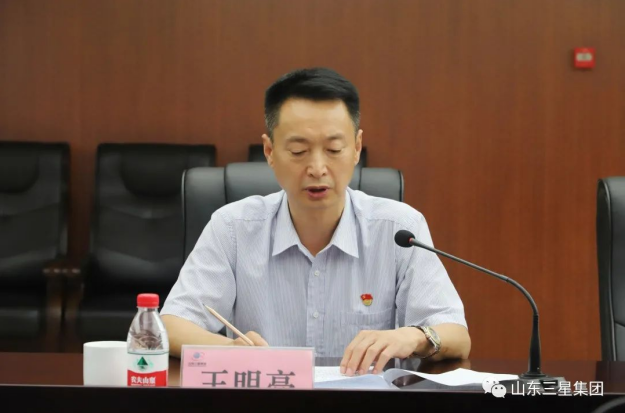 王明亮重點匯報企業(yè)綠色發(fā)展成果,并就新階段發(fā)展規(guī)劃與來訪領(lǐng)導(dǎo)作溝通交流。他表示,多年來,山東三星集團(tuán)始終堅持黨建引領(lǐng),積極推動黨建工作與企業(yè)發(fā)展同頻共振、互促共進(jìn),持續(xù)深化生態(tài)保護(hù)機(jī)制建設(shè)及項目技改,在生產(chǎn)生態(tài)協(xié)調(diào)發(fā)展之路上穩(wěn)步前行。他希望來訪領(lǐng)導(dǎo)就企業(yè)新時代綠色低碳發(fā)展給予政策支持和技術(shù)指導(dǎo),并表示集團(tuán)將深入學(xué)習(xí)貫徹省第十二次黨代會精神,引導(dǎo)全體黨員凝聚“走在前、開新局”的思想共識,真正把黨的政治優(yōu)勢、組織優(yōu)勢轉(zhuǎn)化為企業(yè)發(fā)展的強(qiáng)大動力,增強(qiáng)經(jīng)濟(jì)發(fā)展韌性,提高生態(tài)環(huán)境治理效能,建設(shè)綠色低碳工廠,打造讓國民放心的綠色品牌,以更大力度、更實舉措推動山東經(jīng)濟(jì)社會綠色低碳高質(zhì)量發(fā)展。