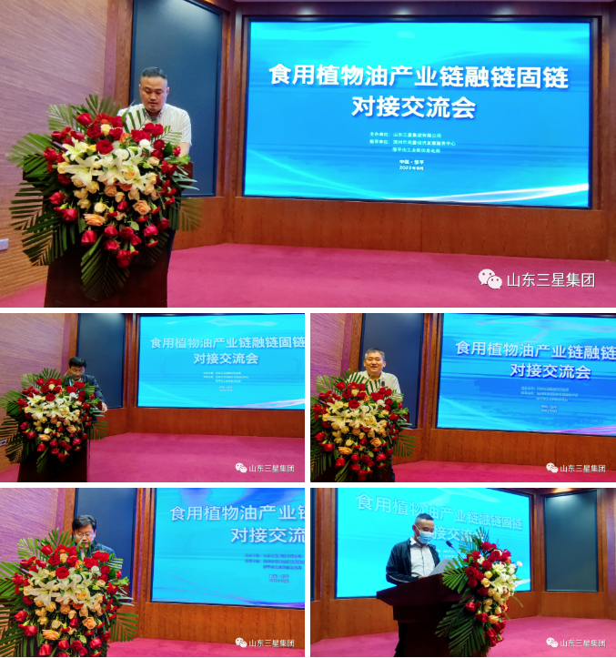 為進(jìn)一步推動產(chǎn)業(yè)鏈融通創(chuàng)新、促進(jìn)大中小企業(yè)協(xié)同發(fā)展,9月28日,由山東三星集團(tuán)主辦,濱州市民營經(jīng)濟(jì)發(fā)展服務(wù)中心、鄒平市工業(yè)和信息化局指導(dǎo)的食用植物油產(chǎn)業(yè)鏈融鏈固鏈對接交流會在山東鄒平召開。