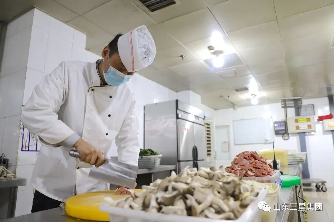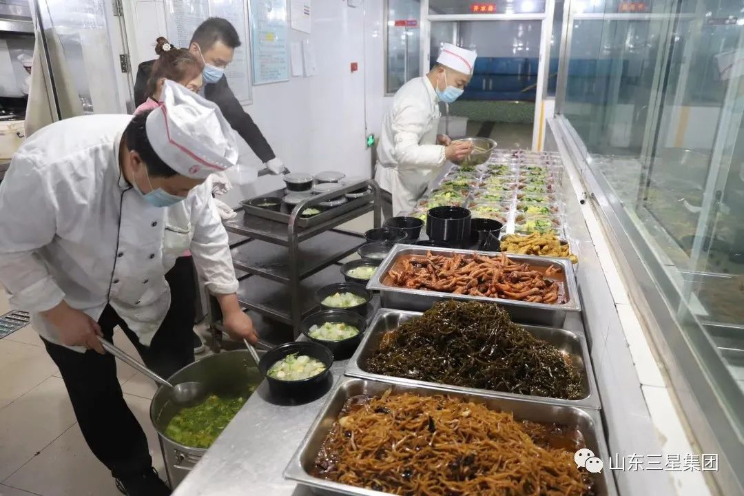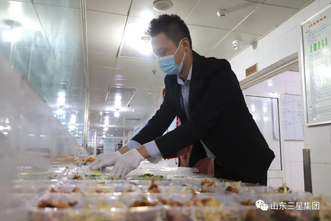 11月下旬,鄒平疫情散發(fā),山東三星集團(tuán)總部150余名干部員工緊急趕赴公司,開啟24小時(shí)駐廠模式。此時(shí)此刻,穩(wěn)產(chǎn)保供是重中之重,保障駐廠人員的三餐供應(yīng)也是首要任務(wù)。趙龍帶領(lǐng)團(tuán)隊(duì)快速盤點(diǎn)儲存食材,聯(lián)絡(luò)供貨渠道,做好細(xì)致分工責(zé)任落實(shí)……一切工作按部就班開展起來,150名干部員工也過上了“早餐蛋奶充足 午晚餐葷素管夠”的駐廠生活。