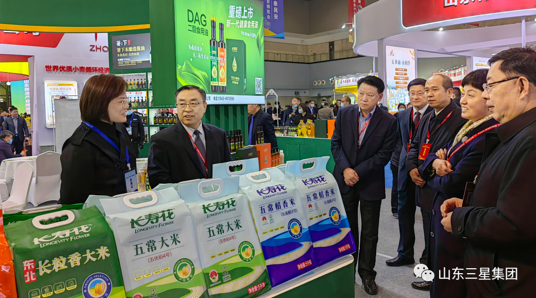 3月16日,由山東省糧食和物資儲(chǔ)備局、泰安市人民政府共同主辦的第四屆山東糧油產(chǎn)業(yè)博覽會(huì)在泰安市泰山國(guó)際會(huì)展中心舉辦,長(zhǎng)壽花食品受邀參展。山東三星集團(tuán)董事長(zhǎng)、總裁王亞群,規(guī)劃發(fā)展部部長(zhǎng)陳劍飛出席活動(dòng)。