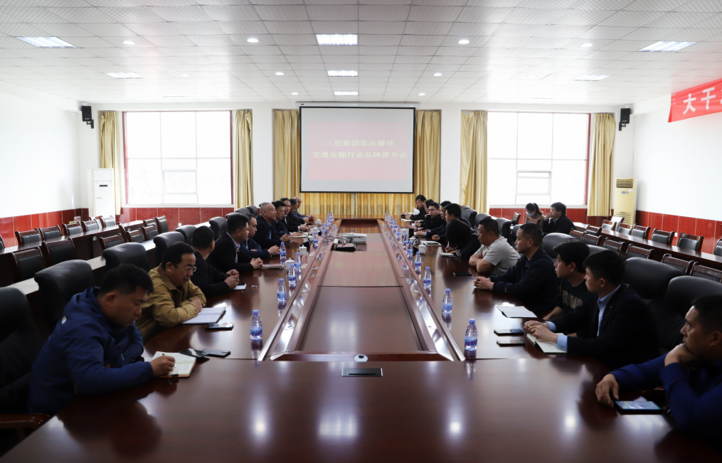 4月14日,由鄒平市交通運輸局牽頭組織的交通運輸行業(yè)常壓罐體品牌推介會在山東三星集團機械公司召開。鄒平市交通運輸局黨組書記、局長董亮,韓店鎮(zhèn)黨委副書記、鎮(zhèn)長魏傳梁,山東三星集團黨總支書記王明峰,機械公司總經理李前進及我市十余家物流運輸公司、運輸車銷售公司代表參加會議。