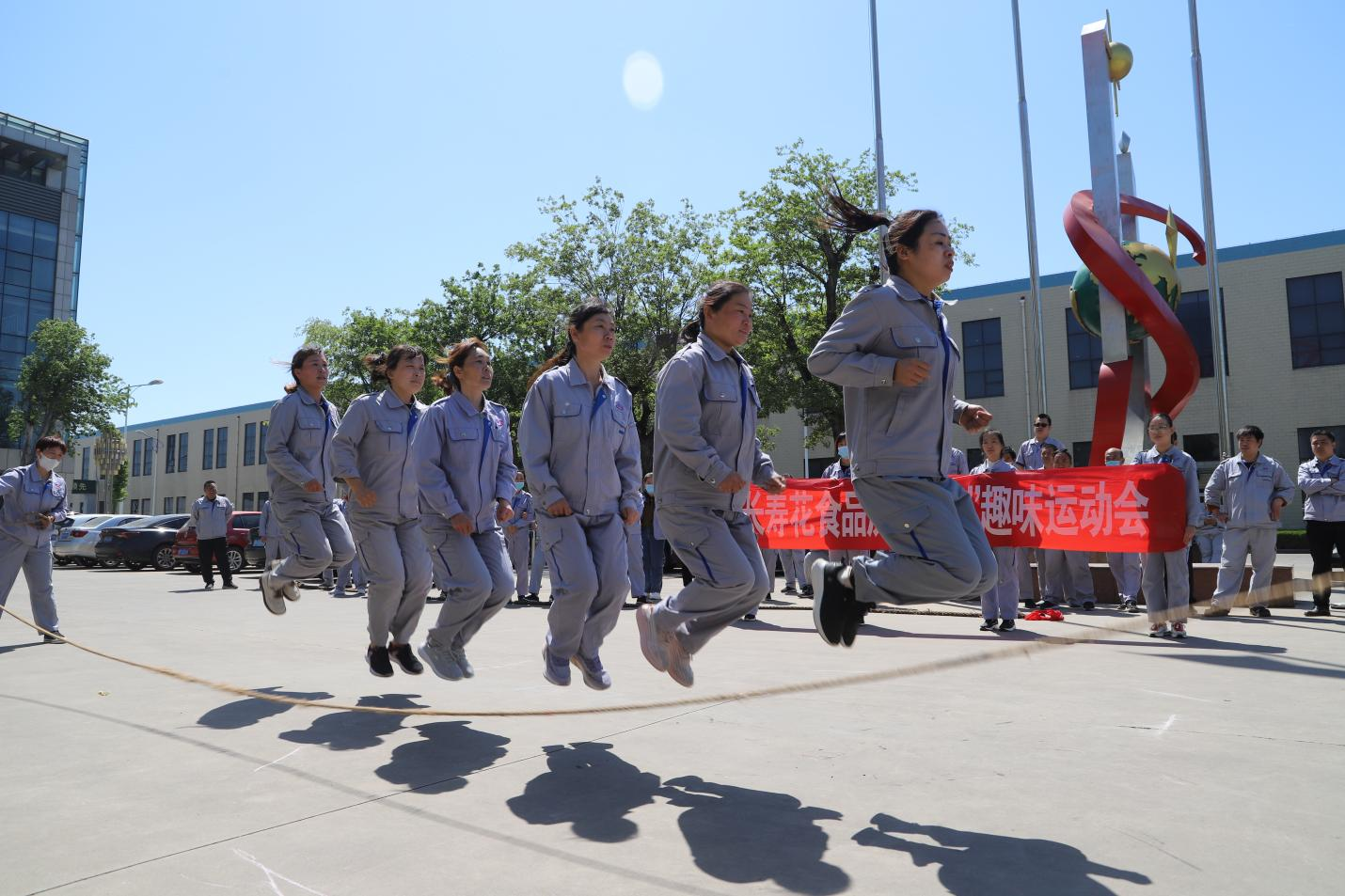 暖陽和風(fēng)下,歡聲笑語揚(yáng)。4月29日上午,長壽花食品精加工事業(yè)部趣味比賽活動(dòng)在中心廠區(qū)熱鬧舉辦。團(tuán)隊(duì)拔河、集體跳繩,看似簡單的項(xiàng)目,比的是實(shí)力耐力,靠得是團(tuán)隊(duì)協(xié)作,大家真正擰成一股繩,心往一處想,勁往一處使,充分展現(xiàn)了團(tuán)隊(duì)協(xié)作意識(shí)和集體榮譽(yù)精神。
