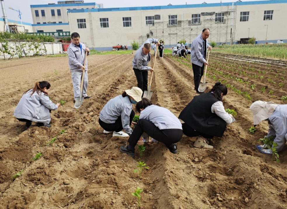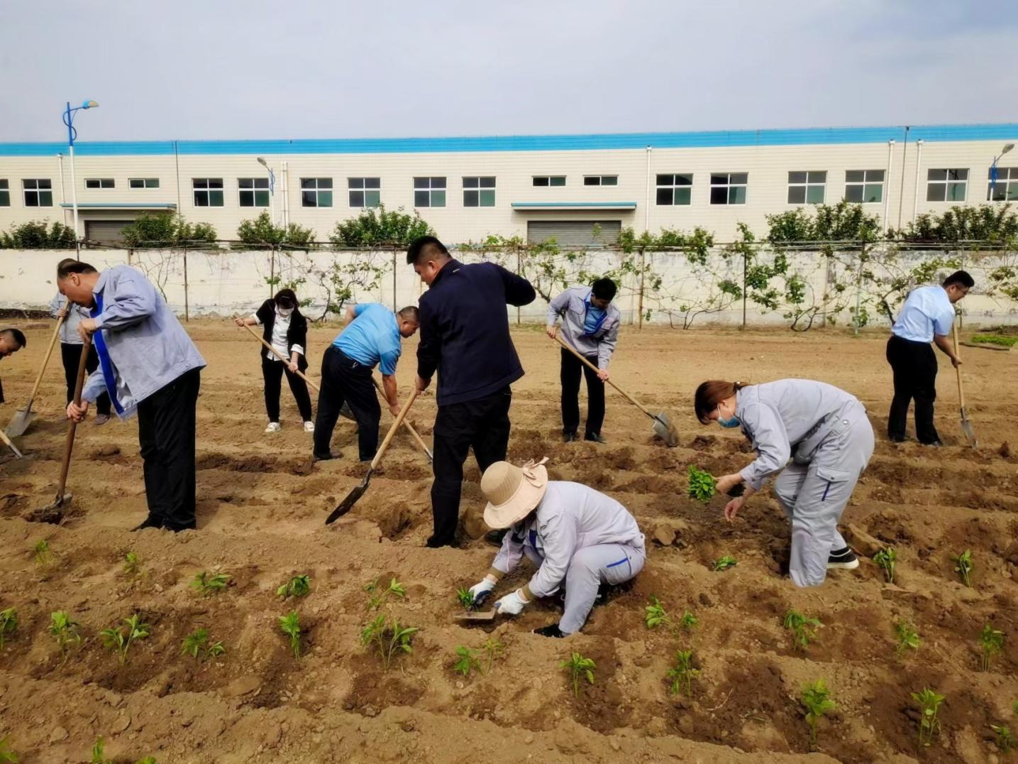 活動(dòng)中,大家興致勃勃,干勁十足,三人一組,五人一群,挖土、插苗、栽種、澆水,配合得井然有序,經(jīng)過一個(gè)多小時(shí)的努力,廠區(qū)空置土地發(fā)揮了價(jià)值,在綠色秧苗點(diǎn)綴下,一片生機(jī)勃勃。期待豐收季節(jié)的到來,共享勞動(dòng)果實(shí),品鑒幸福滋味。