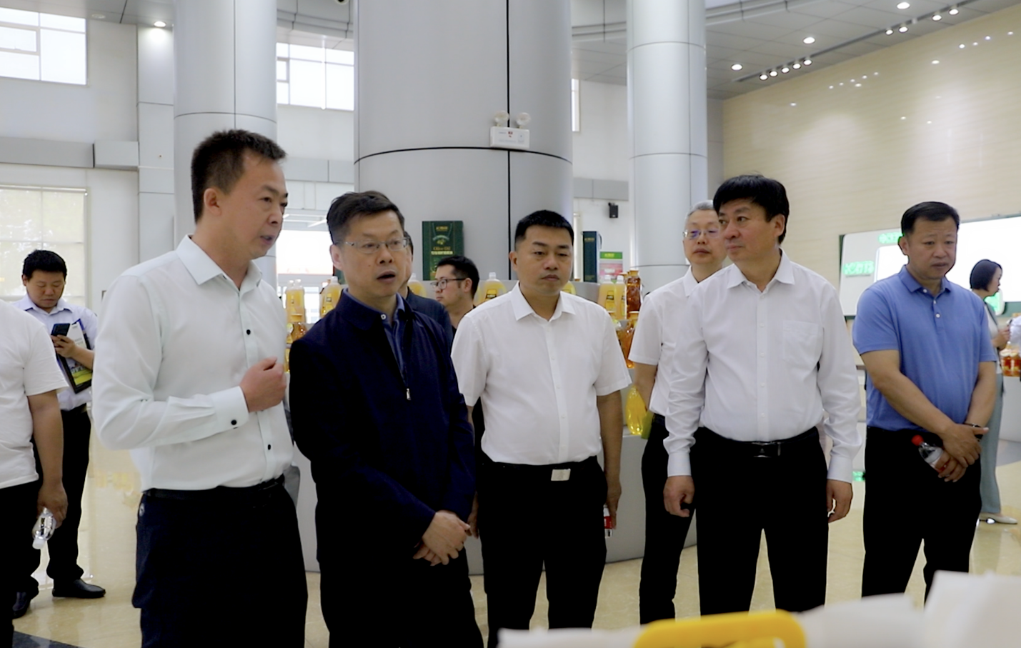 5月14日,第十九屆中國國際糧油產(chǎn)品及設(shè)備技術(shù)展示交易會(huì)舉辦期間,湖北省、廣西壯族自治區(qū)、吉林省糧食和物資儲(chǔ)備局考察團(tuán)就糧食產(chǎn)業(yè)高質(zhì)量發(fā)展及食用油品牌建設(shè)情況來山東三星集團(tuán)參觀考察。山東省糧食和物資儲(chǔ)備局黨組成員、副局長(zhǎng)劉萍,濱州市糧食和物資儲(chǔ)備局黨組書記、局長(zhǎng)藺兵川,鄒平市政協(xié)副主席王大慶,市發(fā)改局黨組書記、局長(zhǎng)姚慶山參加活動(dòng)。