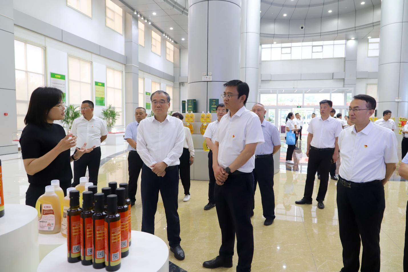 在長壽花食品綠色生產(chǎn)基地,張程鵬一行實地參觀了長壽花產(chǎn)品展廳和全自動灌裝包裝生產(chǎn)車間,詳細了解了企業(yè)黨建引領(lǐng)、經(jīng)營發(fā)展、生產(chǎn)工藝流程以及新產(chǎn)品研發(fā)等情況。