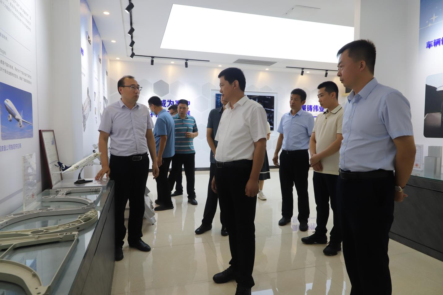 在裕航合金高端鋁精深加工生產(chǎn)基地,考察領(lǐng)導詳細了解企業(yè)生產(chǎn)經(jīng)營、產(chǎn)業(yè)布局及科創(chuàng)轉(zhuǎn)化等方面情況,對公司強化創(chuàng)新驅(qū)動、提升科創(chuàng)水平、實現(xiàn)產(chǎn)學研聯(lián)動發(fā)展的做法和成效給予高度評價。