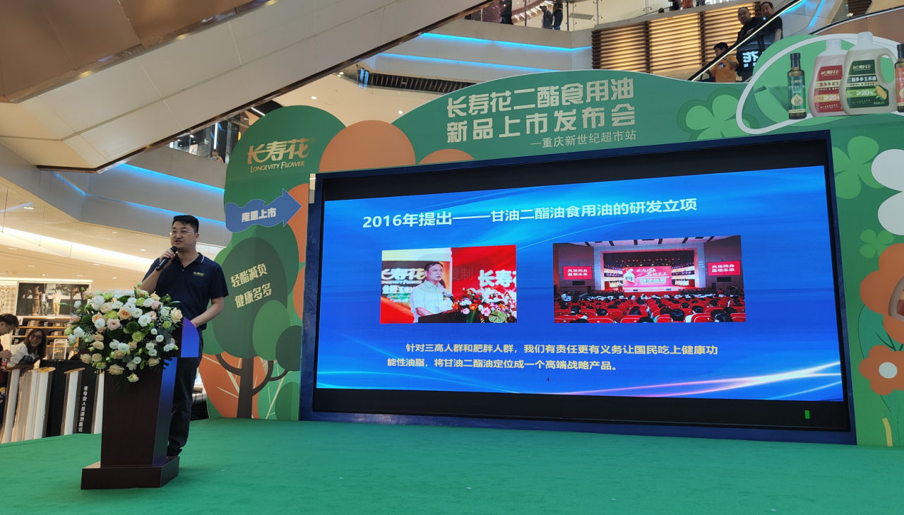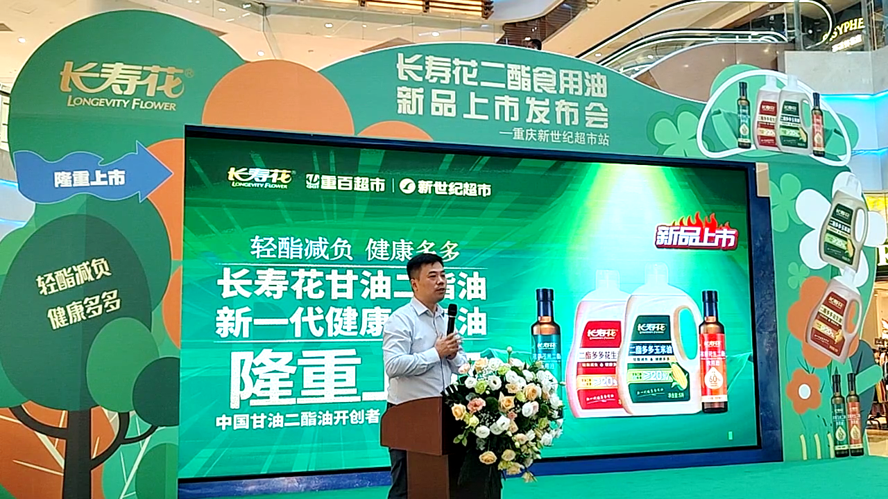 任在順首先致辭,向在場(chǎng)嘉賓介紹了長(zhǎng)壽花戰(zhàn)略新品——甘油二酯油項(xiàng)目的推進(jìn)情況及未來發(fā)展前景。