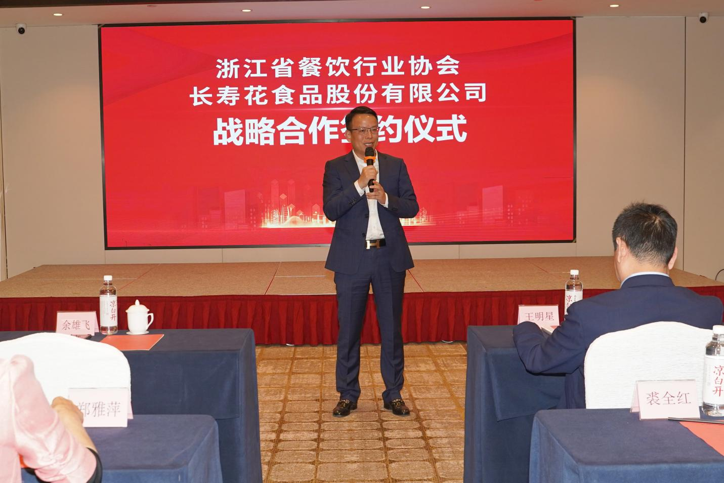王明星對浙江省餐飲行業(yè)協(xié)會為百姓謀求健康、安全、營養(yǎng)“舌尖美味”的社會擔當意識和龍頭引領作用表示高度贊揚,并對其給予長壽花品牌理念及產(chǎn)品品質(zhì)的充分肯定表示感謝。