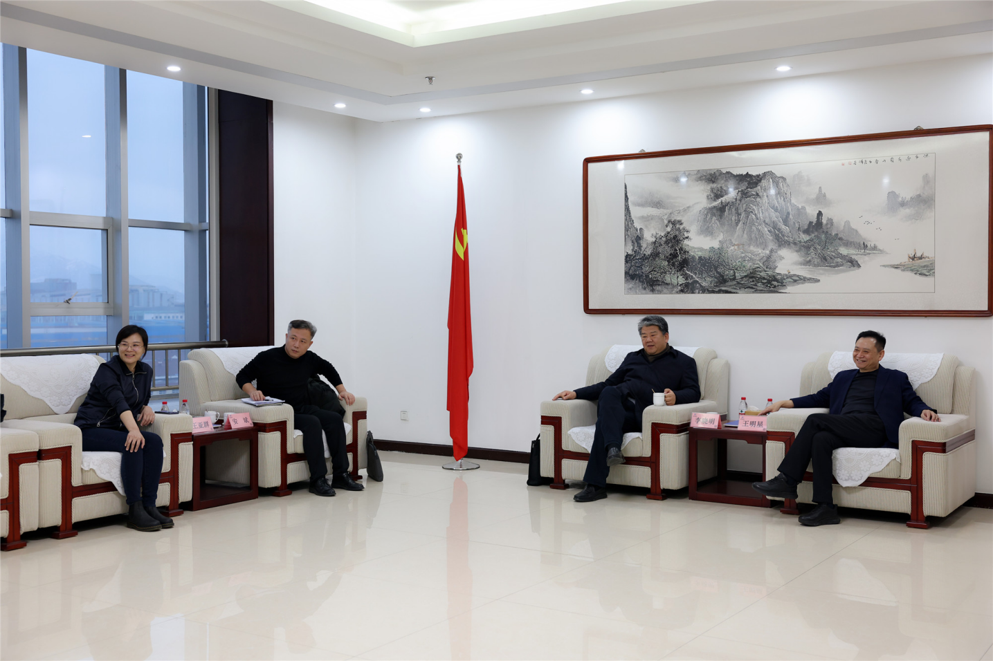 1月19日,濱州市市場監(jiān)管局黨組成員、副局長、二級調(diào)研員李曉明,濱州市檢驗檢測中心副主任安斌一行來山東三星集團(tuán)調(diào)研,鄒平市市場監(jiān)管局黨組成員、副局長張文貴陪同活動。山東三星集團(tuán)董事長、總裁王亞群,長壽花食品董事長、總經(jīng)理王明星,集團(tuán)常務(wù)副總經(jīng)理王明亮,副總經(jīng)理韓延庭,裕航合金公司總經(jīng)理王呈剛接待調(diào)研領(lǐng)導(dǎo)。