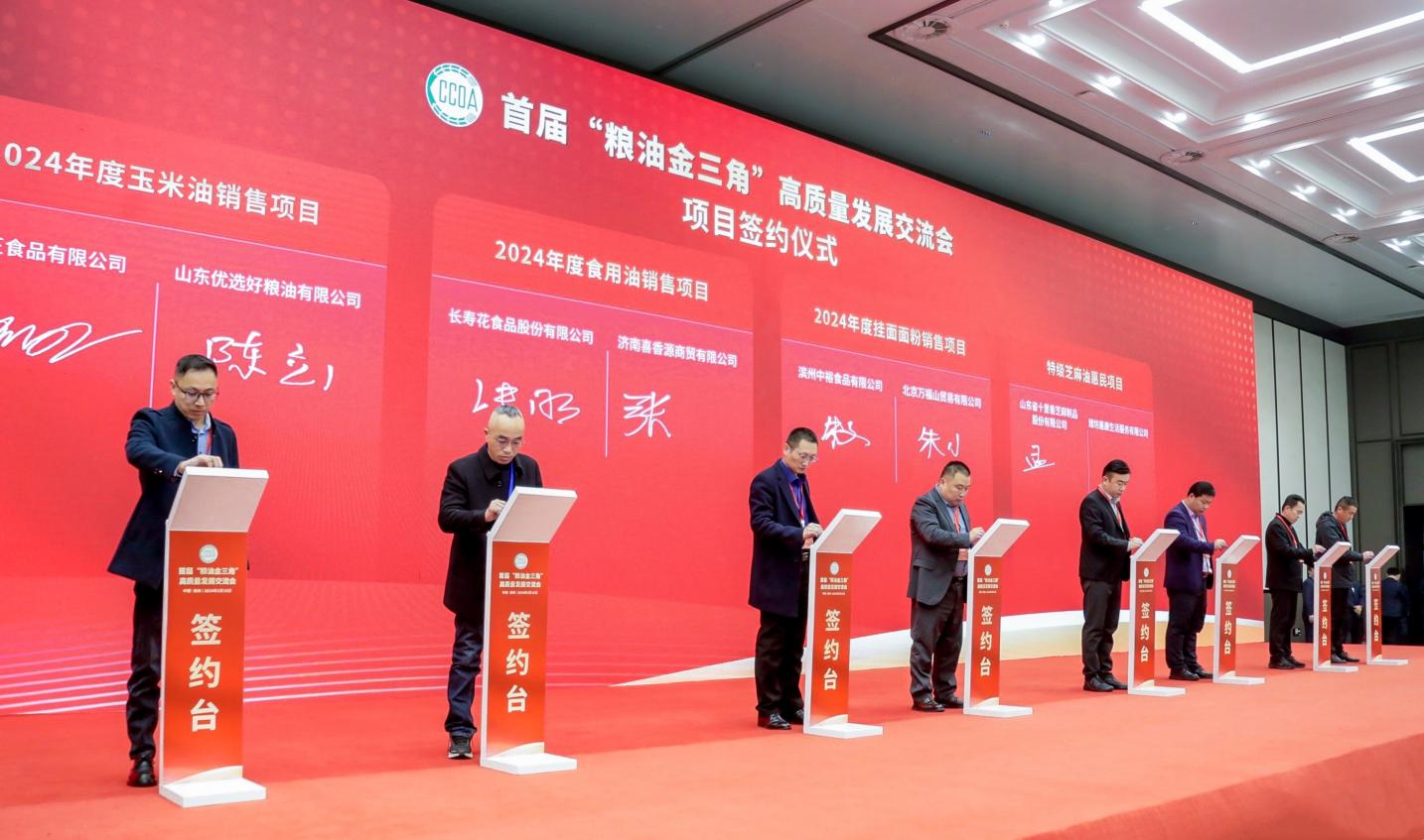 期間,首屆“糧油金三角”高質(zhì)量發(fā)展交流會上,作為全國第一個“糧食產(chǎn)業(yè)經(jīng)濟(jì)發(fā)展示范市”、首個糧油食品加工產(chǎn)業(yè)集群主營業(yè)務(wù)收入超千億地級市,濱州組織30余家糧油食品企業(yè)參展,重點(diǎn)展示濱州市糧食產(chǎn)業(yè)龍頭企業(yè)融合發(fā)展,推動鄉(xiāng)村振興的最新成果,大力開展招商引資活動,并吸引全國糧油經(jīng)銷商集中采購訂貨。長壽花食品作為品牌企業(yè)代表上臺簽約。
