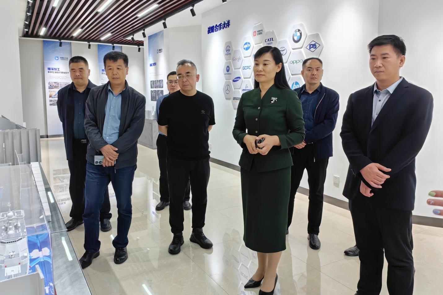 在裕航合金鋁精深加工產(chǎn)業(yè)基地,調(diào)研領(lǐng)導(dǎo)認(rèn)真聽取企業(yè)鋁型材相關(guān)工藝技術(shù)及特色產(chǎn)品集群等情況介紹,深入了解鋁產(chǎn)業(yè)板塊強(qiáng)鏈延鏈、項(xiàng)目創(chuàng)新升級(jí)等發(fā)展情況。