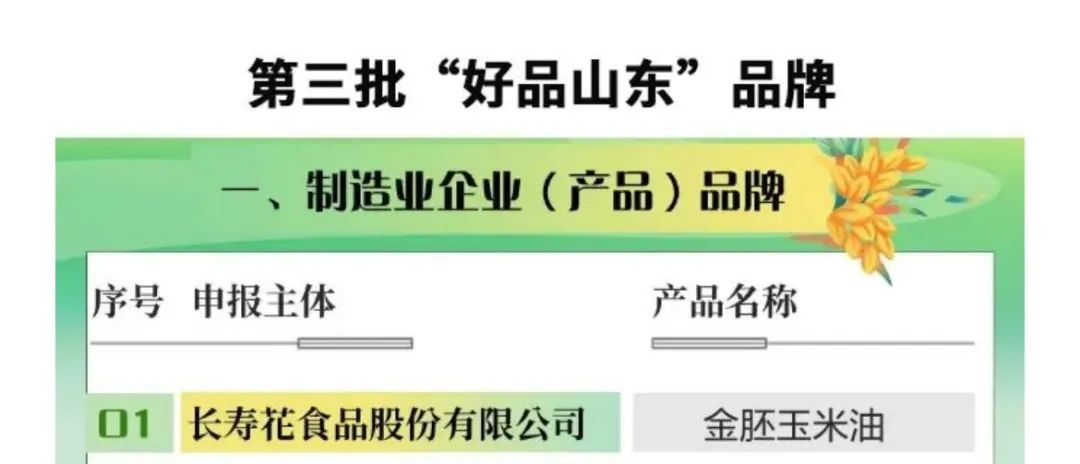 5月10日,山東省人民政府新聞辦公室在青州市博物館舉行中國(guó)品牌日系列活動(dòng)現(xiàn)場(chǎng)新聞發(fā)布會(huì),邀請(qǐng)山東省市場(chǎng)監(jiān)督管理局負(fù)責(zé)同志等介紹山東省品牌戰(zhàn)略推進(jìn)工作情況,并發(fā)布第三批“好品山東”品牌名單。長(zhǎng)壽花金胚玉米油榮登“好品山東”品牌榜,并位列榜單首位,用卓越品質(zhì)成就玉米油品牌典范。