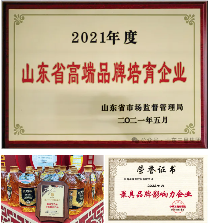 企業(yè)先后獲評(píng)中國(guó)糧油領(lǐng)軍品牌、最具品牌影響力企業(yè)、山東省高端品牌培育企業(yè)等榮譽(yù)稱號(hào),并多次上榜中國(guó)品牌力指數(shù)top10榜單,連續(xù)多年獲評(píng)中國(guó)玉米油加工企業(yè)10強(qiáng)首位。產(chǎn)品品牌還攬獲中國(guó)好糧油示范產(chǎn)品、中國(guó)綠色食品博覽會(huì)金獎(jiǎng)、山東優(yōu)質(zhì)品牌產(chǎn)品等諸多獎(jiǎng)項(xiàng),并是“我最喜愛(ài)的齊魯糧油產(chǎn)品”中唯一的玉米油品牌。
