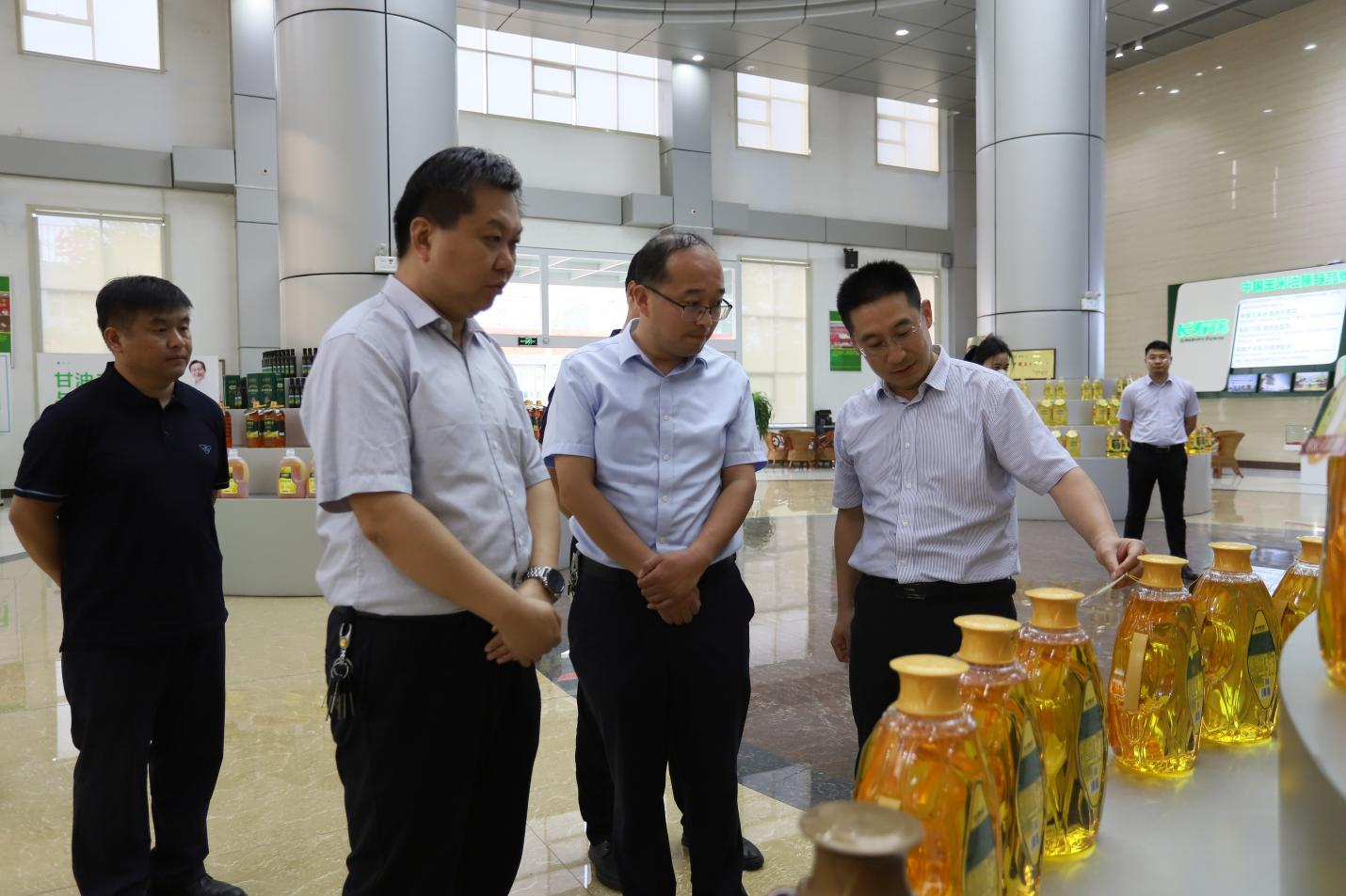 在長壽花食品綠色生產(chǎn)基地展廳和智能化生產(chǎn)車間,郭立軍一行聽取相關(guān)情況介紹,詳細了解企業(yè)在生產(chǎn)運營、市場銷售、產(chǎn)品研發(fā)等方面的情況。
