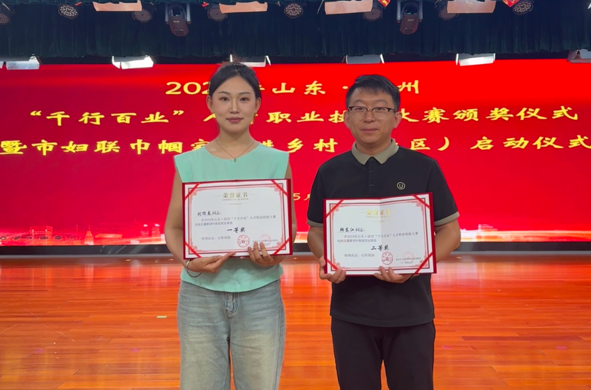 日前,2024年山東·濱州“千行百業(yè)”人才職業(yè)技能大賽頒獎(jiǎng)儀式在濱州舉行。長(zhǎng)壽花電商運(yùn)營(yíng)部主播劉迎春、韓東江作為企業(yè)代表參賽,在“電商直播”賽項(xiàng)中攬獲第一、二名,分別獲得大賽一等獎(jiǎng)、二等獎(jiǎng)的優(yōu)秀成績(jī)。