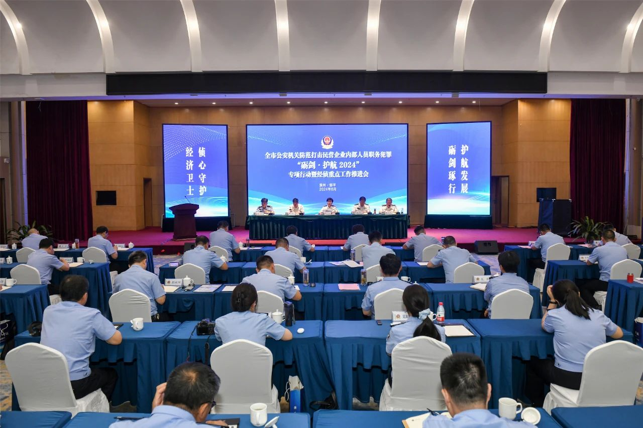 6月11日,全市公安機(jī)關(guān)防范打擊民營(yíng)企業(yè)內(nèi)部人員職務(wù)犯罪“礪劍·護(hù)航2024”專項(xiàng)行動(dòng)暨經(jīng)偵重點(diǎn)工作推進(jìn)會(huì)在鄒平市召開。會(huì)議旨在深入學(xué)習(xí)貫徹習(xí)近平總書記視察山東、主持召開企業(yè)和專家座談會(huì)時(shí)的重要講話重要指示精神以及全國(guó)公安工作會(huì)議、全省公安機(jī)關(guān)視頻會(huì)議精神,落實(shí)中央和省、市促進(jìn)民營(yíng)經(jīng)濟(jì)發(fā)展系列工作要求,進(jìn)一步扎實(shí)推進(jìn)“礪劍·護(hù)航2024”專項(xiàng)行動(dòng)及經(jīng)偵重點(diǎn)工作。