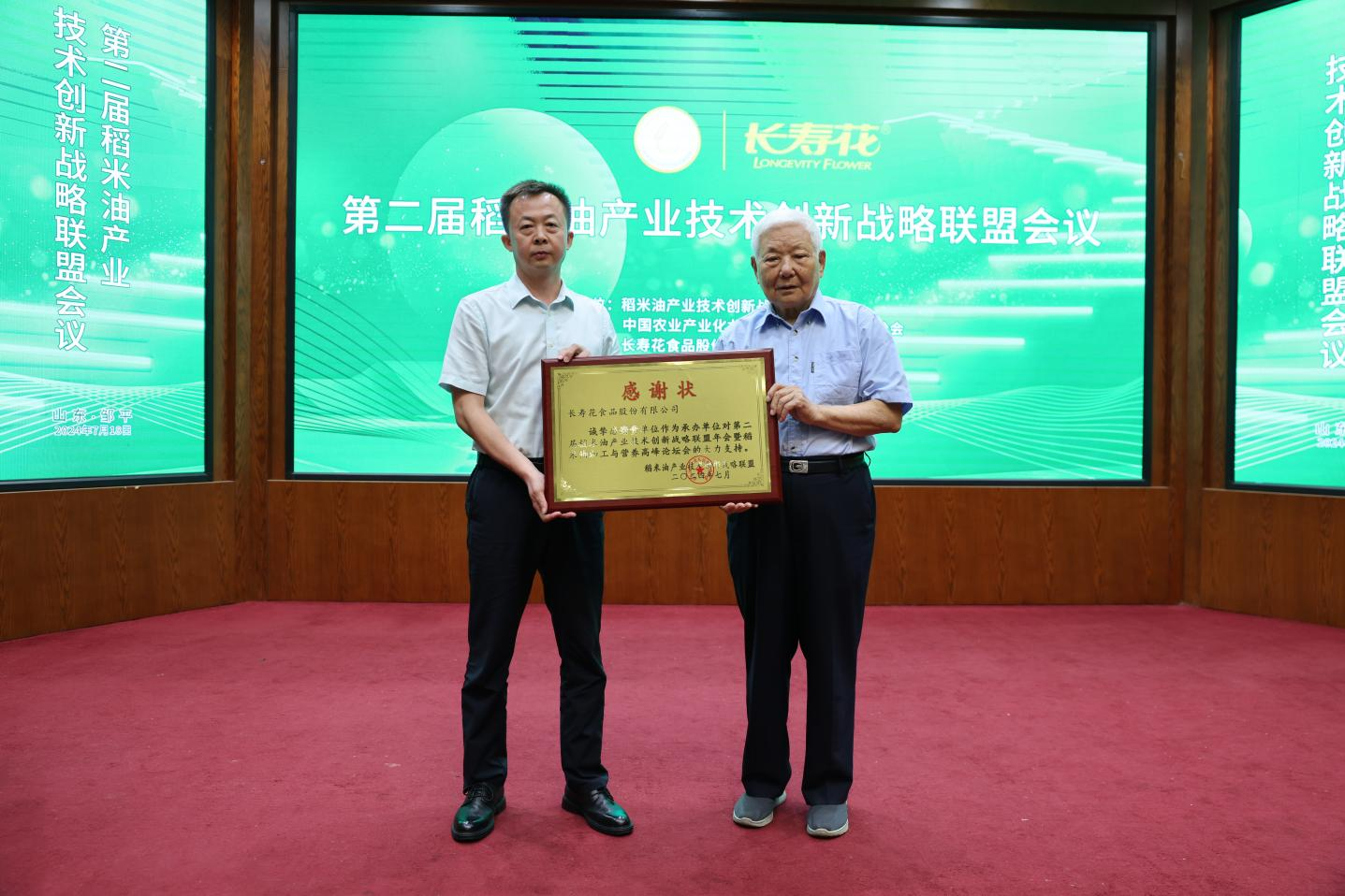 本次會議的成功舉辦,長壽花食品股份有限公司作為承辦單位,全力配合會議的組織實施,高質(zhì)量完成承辦工作,確保了大會的圓滿成功,為感謝長壽花食品對會議的大力支持,王瑞元為長壽花食品頒發(fā)感謝狀。