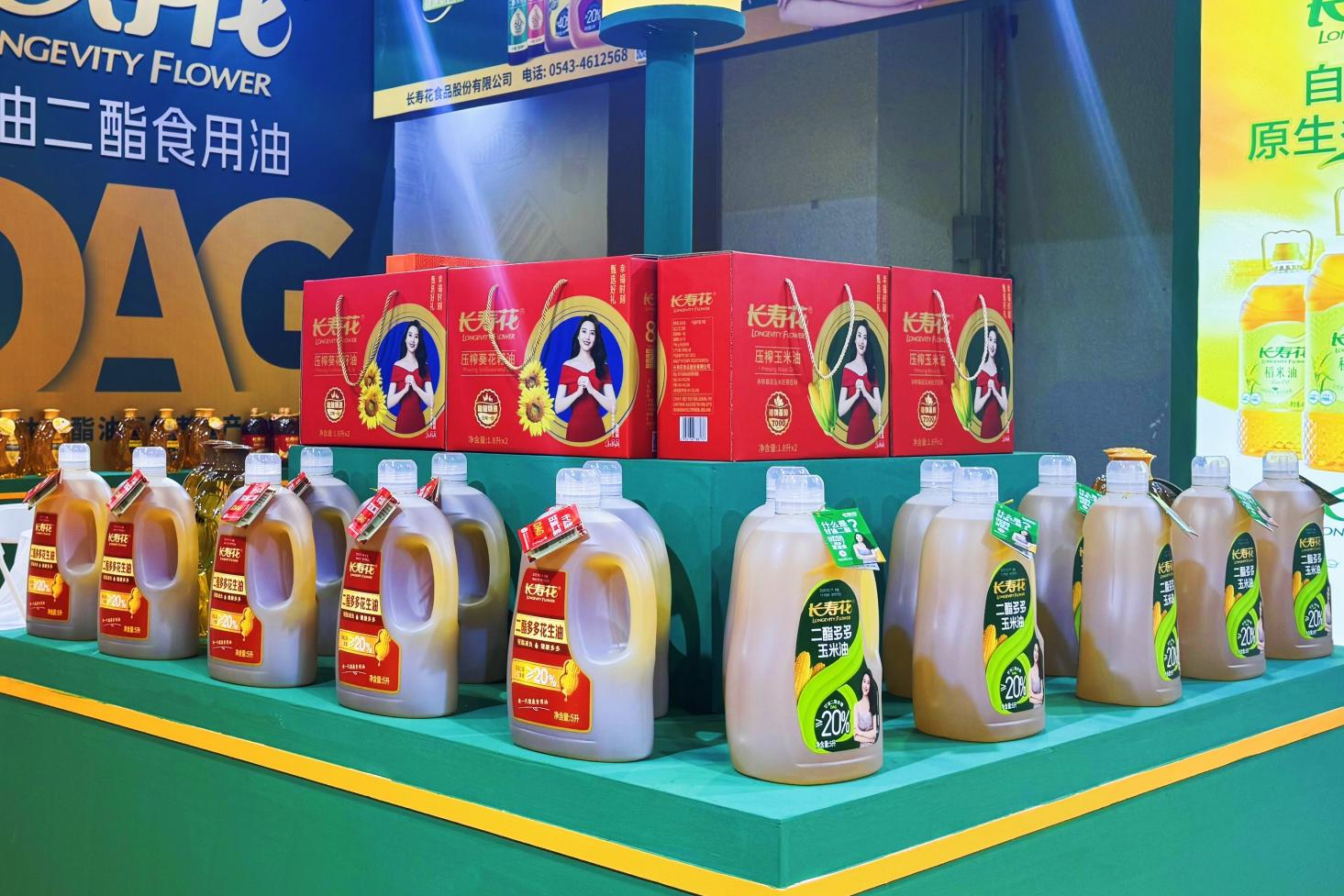 本次展會,長壽花食品以“為國家做好油 讓國民用好油”理念為核心,構(gòu)建企覆蓋玉米油、花生油、稻米油、菜籽油等的全品類矩陣。其中,甘油二酯油系列產(chǎn)品,以40%——96%的DAG含量重新定義了高端健康食用油標準。二酯食用油一亮相就吸引了眾多與會嘉賓的目光,受到熱切關(guān)注。