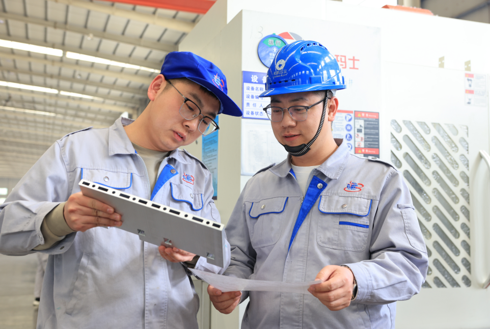 2017年那個未見初雪的12月,剛走出校園的卜建磊,握著機械工程專業(yè)畢業(yè)證書,帶著對“世界鋁加工看鄒平”的憧憬,在裕航合金投下簡歷。入職首日的情景仍歷歷在目。擠壓車間125MN擠壓機轟鳴聲震耳欲聾,500多度的鋁棒在輥道上與空氣中的水分碰撞釋放出一縷熱氣。從測量產(chǎn)品厚度偏差開始,到產(chǎn)品生產(chǎn)異常記錄,以及跟隨師傅們連夜調整工藝,在這里,卜建磊第一次懂得精密制造的分量。
