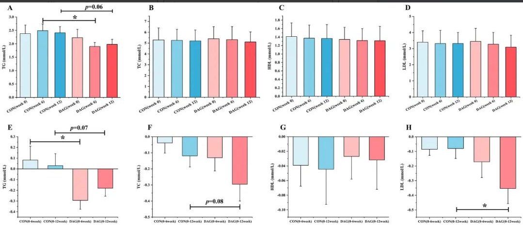 臨床實驗在江南大學附屬醫(yī)院開展,結果顯示:以甘油二酯食用油替代傳統(tǒng)家庭烹調用油,干預12周后,受試者的低密度脂蛋白膽固醇(LDL-C)水平相比于對照組(甘油三酯組)出現(xiàn)顯著降低,同時甘油三酯(TG)水平也呈現(xiàn)下降趨勢。