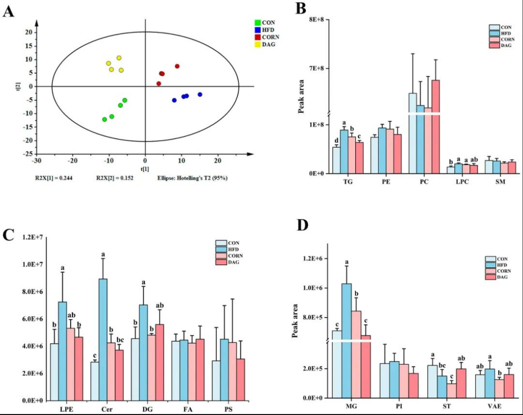 (脂質組學分析:補充DAG對肝臟脂質代謝的影響)
