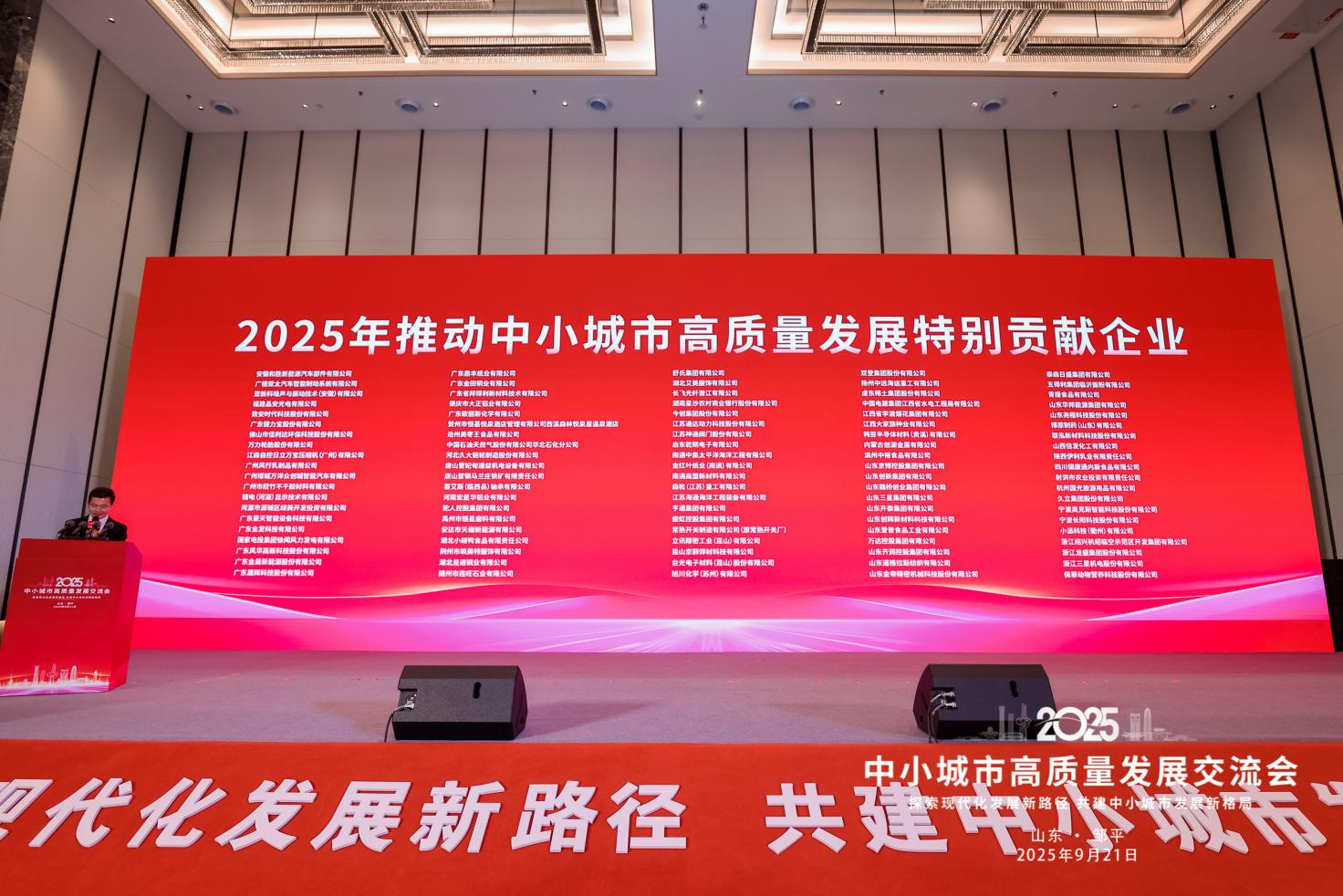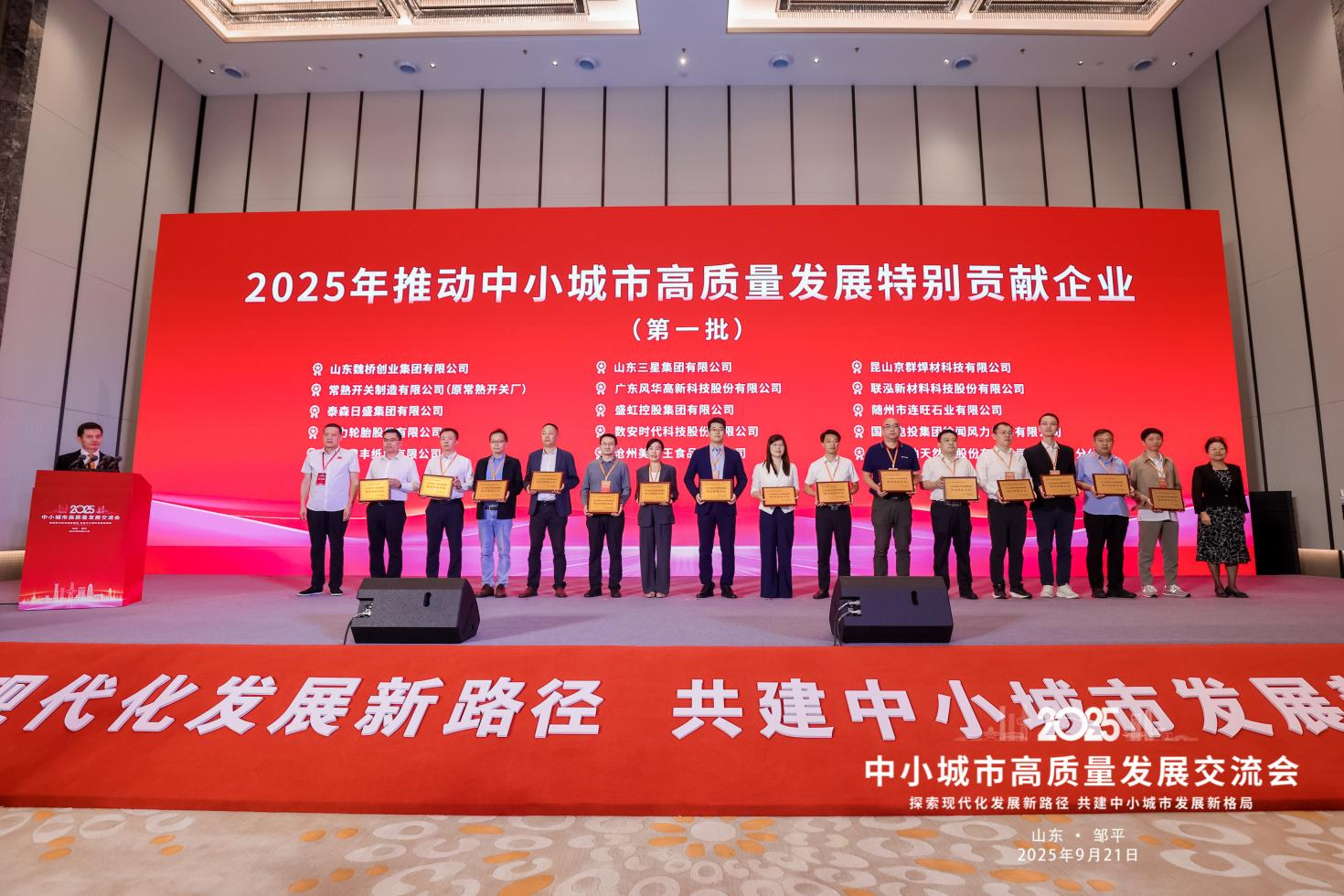 大會現(xiàn)場隆重揭曉了2025年“推動中小城市高質(zhì)量發(fā)展特別貢獻企業(yè)”名單,并對入圍企業(yè)予以表彰。山東三星集團憑借創(chuàng)新引領(lǐng)行業(yè)進步、產(chǎn)業(yè)帶動城鄉(xiāng)發(fā)展的突出貢獻成功入選。這一榮譽的獲得不僅是對企業(yè)多年來深耕實業(yè)、矢志創(chuàng)新的充分認可,更是對企業(yè)積極融入中小城市發(fā)展戰(zhàn)略、發(fā)揮龍頭企業(yè)帶動作用的高度肯定。