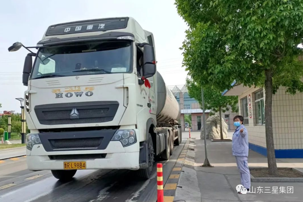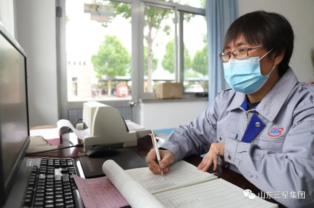 見到陳松松,已是第二天的下午。春暖陽光之下,寬闊廠區(qū)之間,五六平米的地磅房面南而座,正對山東三星玉米產(chǎn)業(yè)初加工事業(yè)部大門。陳松松梳一頭利落的短發(fā),架一副粉紫色全框眼鏡、著一身灰色工作服端坐其中,正忙著為入廠車輛過磅稱重、統(tǒng)計數(shù)據(jù),周身的質(zhì)樸與普通勞動者別無二致。唯有眼角的歲月、滿目的清光,暴露了她心中的堅持、執(zhí)著和嚴(yán)謹(jǐn)。