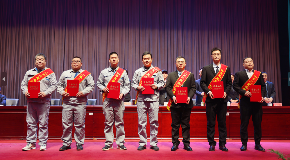 為表彰奮進典型,弘揚實干作風(fēng),集團常務(wù)副總經(jīng)理王明亮宣讀《關(guān)于表彰2023年度先進集體及個人的決定》,對安全生產(chǎn)先進單位、科技創(chuàng)新先進集體、突出貢獻單位、突出貢獻團隊、模范班集體、模范部室及成就獎、突出貢獻獎、優(yōu)秀管理獎、銷售十佳獎、優(yōu)秀黨員、優(yōu)秀員工及優(yōu)秀新員工予以表彰獎勵,重獎2023年在集團科技創(chuàng)新、生產(chǎn)管理、營銷拓展、項目攻堅等領(lǐng)域的27個先進集體和153余名先進個人。