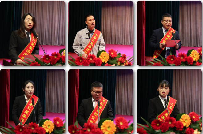 圍繞2024年奮斗目標(biāo),聚焦創(chuàng)新創(chuàng)效,來自突出貢獻單位及生產(chǎn)管理、市場銷售等一線崗位的6位優(yōu)秀代表分別作表態(tài)發(fā)言,表達了他們立足崗位、奮勇爭先的堅定信念以及為企業(yè)穩(wěn)健高質(zhì)量發(fā)展而創(chuàng)新實干的青春理想,充分展現(xiàn)了廣大干部員工忠誠擔(dān)當(dāng)?shù)呢?zé)任意識和奮發(fā)向上的豪邁情懷。