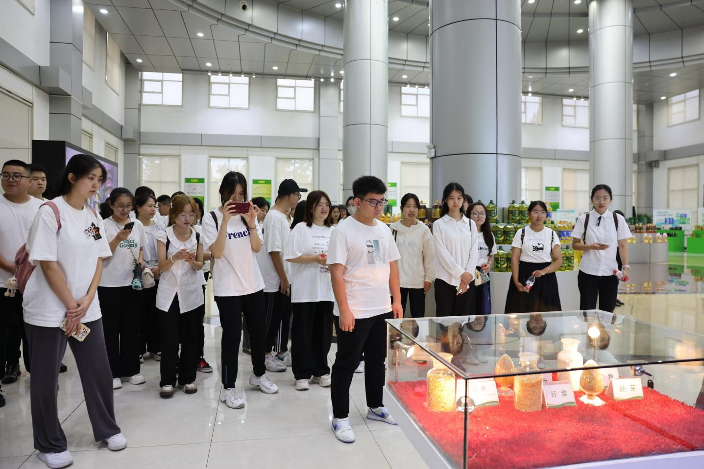 在長(zhǎng)壽花食品綠色生產(chǎn)基地,大學(xué)生們先后到產(chǎn)品展廳、全自動(dòng)灌裝包裝生產(chǎn)線實(shí)地參觀,認(rèn)真聽取企業(yè)產(chǎn)業(yè)布局、新產(chǎn)品研發(fā)、健康廚房產(chǎn)業(yè)鏈構(gòu)建等相關(guān)情況介紹。